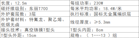 c柔性發(fā)熱電纜電阻值范圍:5-8Ω/M;9-20Ω/M;23-25Ω/M;47-150Ω/M。
